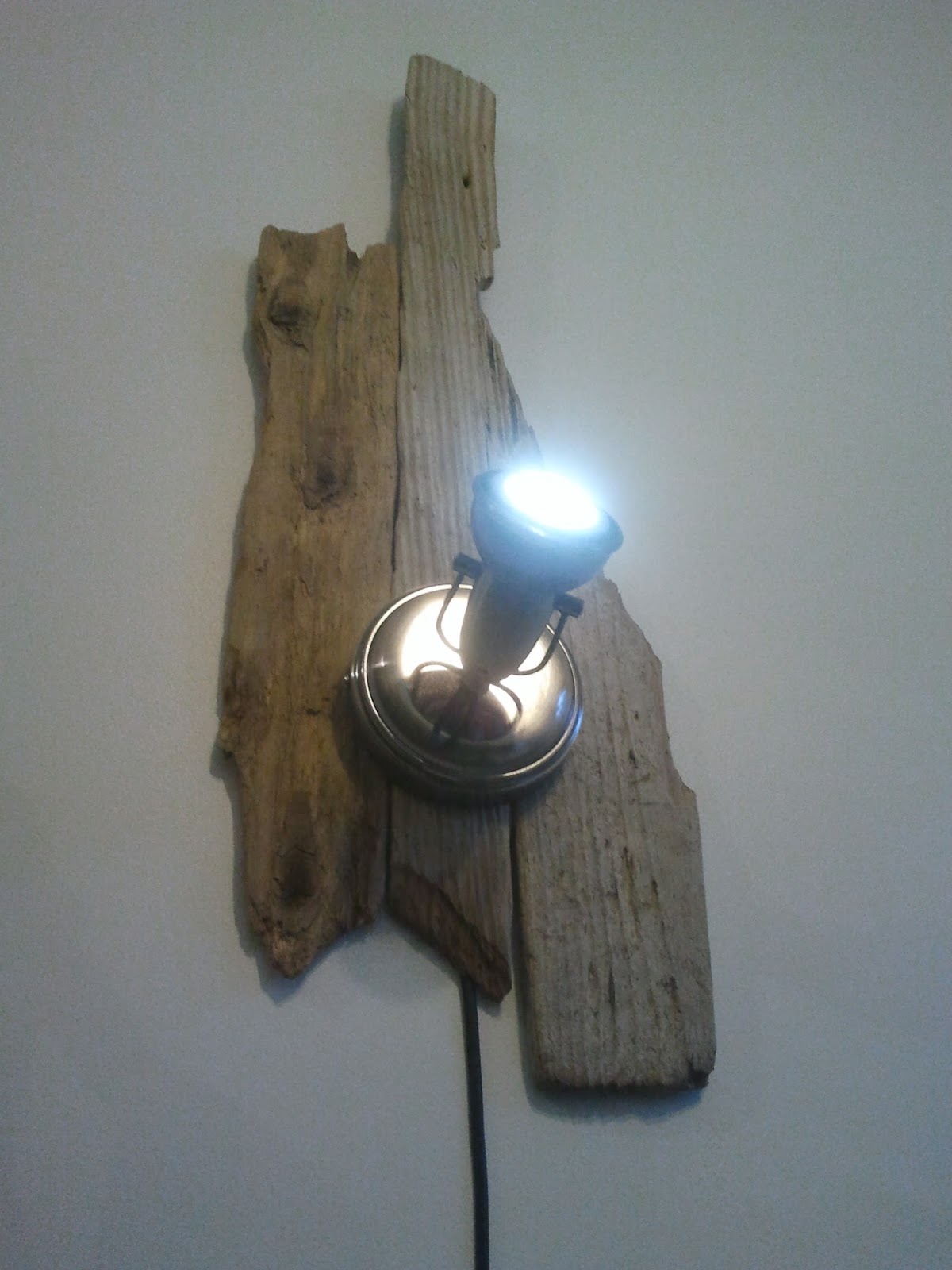 Complément lumière par appliques bois flotté - spots led pour la projection au plafond.